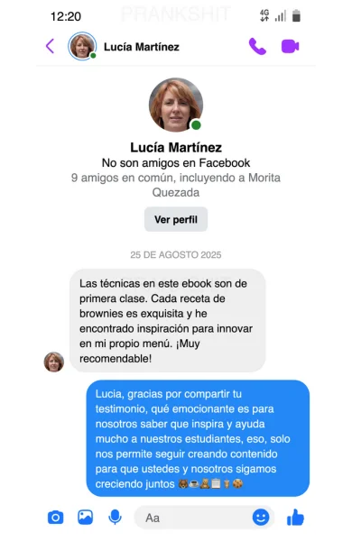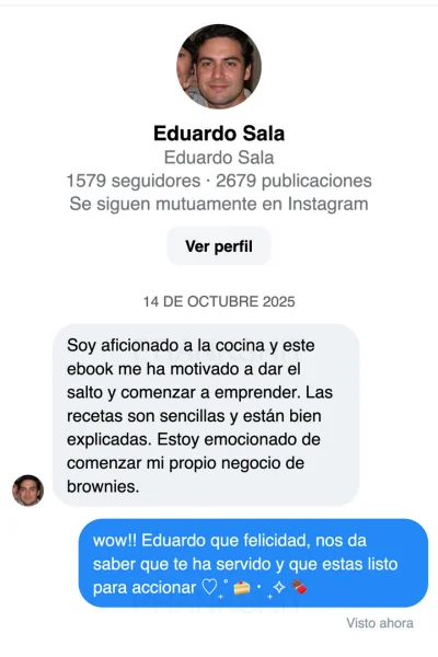 🍫 Aprenderás recetas exclusivas que no encontrarás gratis en ningún lado , con trucos de repostería profesional que separan un brownie común de un brownie que se VENDE SOLO.