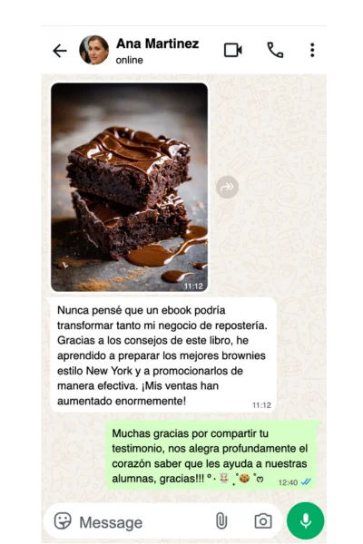 • Descubrirás la fórmula exacta para crear tu propio negocio de Brownies Estilo New York desde la comodidad de tu casa, sin gastar cientos de dólares en cursos presenciales.