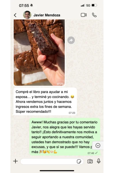 • Al terminar el libro tendrás todas las herramientas para generar entre $100 y $500 por semana , elaborando Brownies Estilo New York de calidad premium, ideales para vender desde casa, por redes sociales, cafeterías y más. Tu cocina se convierte en tu nueva fuente de ingresos.