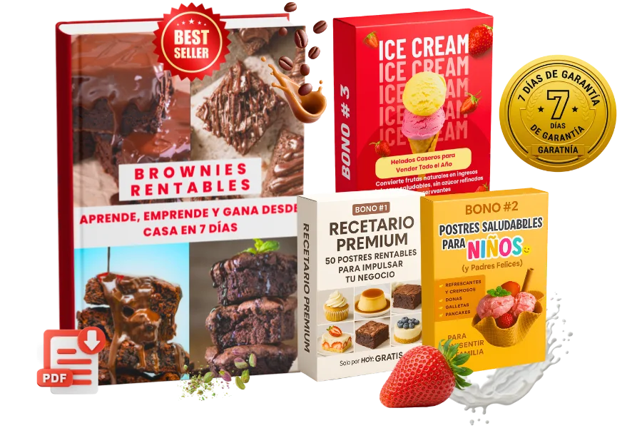 Más de 80 páginas ilustradas , con ejemplos prácticos, pasos simples y técnicas profesionales para crear brownies irresistibles y venderlos desde casa.